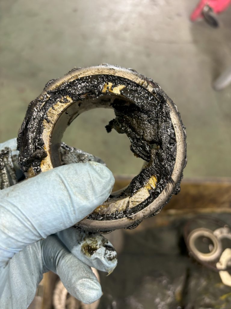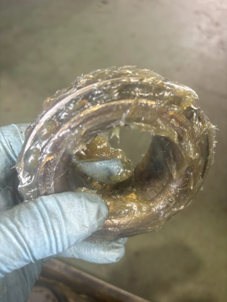 黒い炭のようになったベアリングのグリス